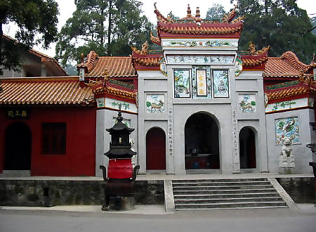在岳麓山半腰,系晉初古寺,是佛教人湘最早的一所大寺。明神宗時 更名為萬壽寺,民國初年復(fù)名,古麓山專。唐代大詩人杜甫曾用“寺門高開 洞庭野,殿腳插入赤沙湖”的詩句稱頌殿字宏大。大雄寶殿等主要建筑,于 1944年被炸毀,僅存山門和觀音閣,現(xiàn)已修整一新.山門上有“古麓出寺” 的橫額,兩旁為“漢魏最初名勝,湖湘第一道場"對聯(lián),門外古楓參天,濃 蔭覆蓋,門內(nèi)園圃百花爭艷。觀音閣為磚木結(jié)構(gòu),1955年曾加以修葺,1980 年再次修整恢復(fù)原貌,并在廳堂神龕中置觀音像。閻內(nèi)常舉辦小型書畫展 覽。觀音閣前有兩株羅漢松,左邊一株是六朝遺跡,稱“六朝松",樹 齡在1700年以上, 是岳麓山植物界的"元老", 老干新枝,紛繁翁 郁,彌足珍貴;右邊一株于清代被巨風(fēng)拔去并被清代人補(bǔ)植。兩棵古松 并峙于閣前,游人樹下經(jīng)過,若入關(guān)隘,故有“關(guān)松"之稱。
