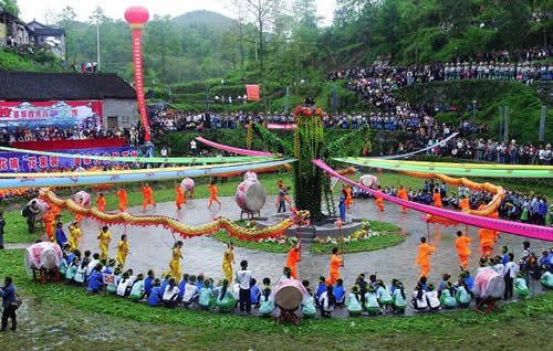山江苗寨 鮮麗奪目的苗族服飾,情調(diào)別致的攔門酒,風格獨特的卡鼓、攔路歌、邊邊場,會使你耳目一新,如癡如醉;還有傳統(tǒng)節(jié)日"四月八"的跳月跳花,"六月六"的山歌對唱,又會使您心動神搖,嘆為觀止。