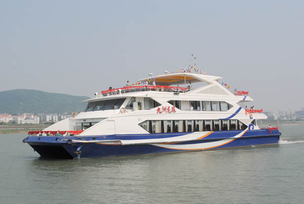 九洲龍?bào)J豪華游船船長(zhǎng)42米,寬12米,擁有280個(gè)客位,游輪采用了國際先進(jìn)的造船技術(shù),流線型的外觀設(shè)計(jì)、造型典雅時(shí)尚。船身共分為3層,可滿足游客餐飲、觀光、娛樂、會(huì)務(wù)等多種需求。