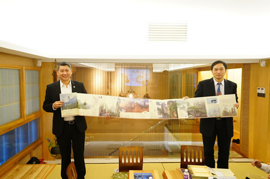 歐陽(yáng)斌向蘋(píng)果旅游集團(tuán)執(zhí)行主席李益輝贈(zèng)送紀(jì)念品