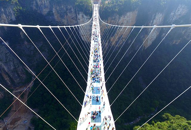 張家界大峽谷玻璃橋橋面由99塊全透明玻璃鋪設,橋面總長430米、寬6米,距谷底相對高度約300米,游客走在橋上就可以清楚地看到腳下的懸崖峭壁,好似行在空中,非常刺激,被美國有線電視新聞網列入世界上11座最壯觀的橋之一。目前,張家界大峽谷玻璃橋已經成為世界旅游的一張響亮名片。